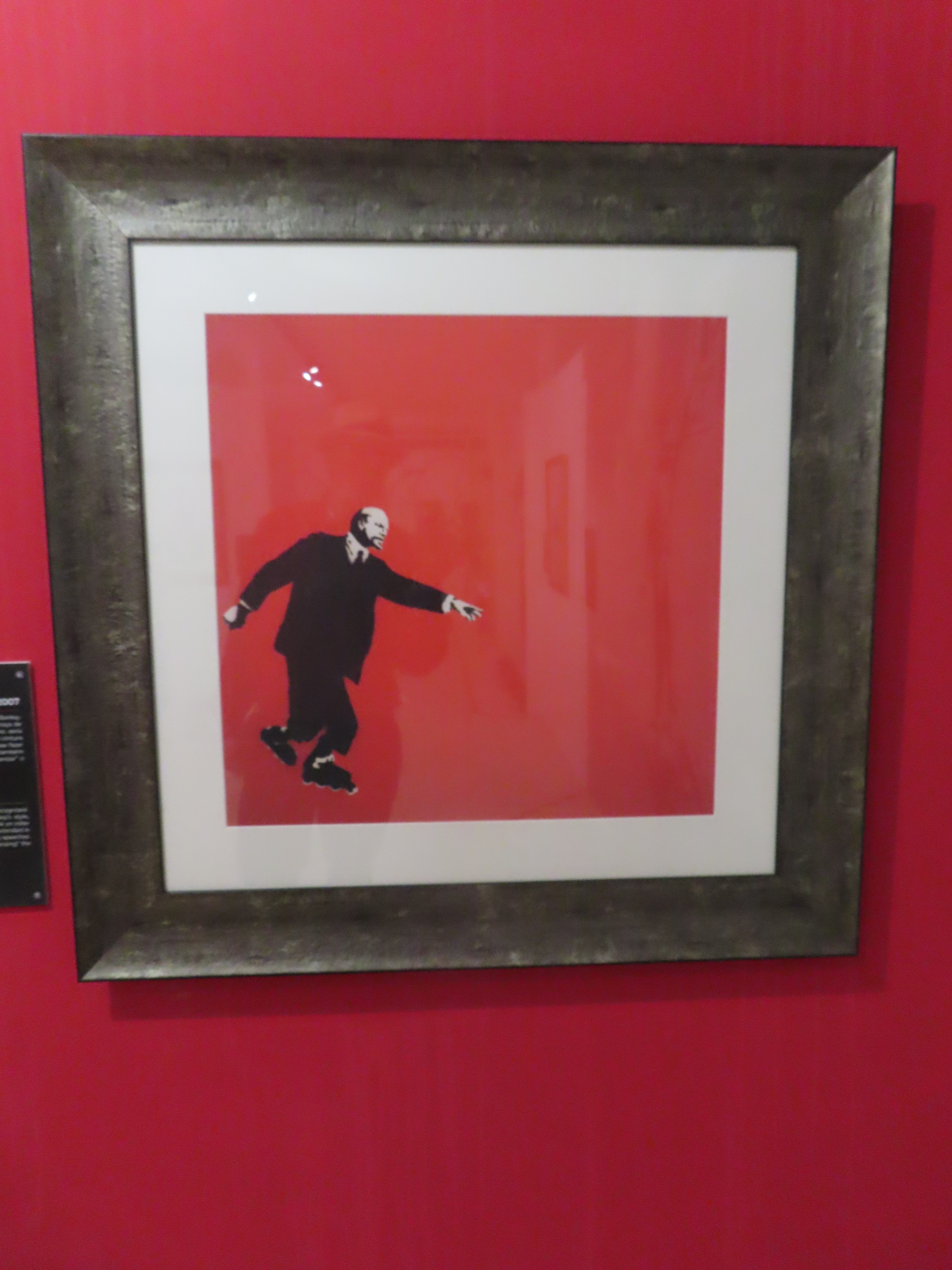 We knew of Banksy, as he has been a presence in the art world for decades. What we did not know was the breadth of his work and his social activism. He has traveled to Israel and painted on the dividing wall in Bethlehem. He has been to Ukraine and painted in active war zones. The satire that we saw wrapped in humor and art was very insightful.