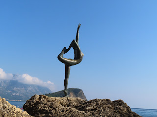 We continued out of the old town to the north along the waters edge. This took us along another beach where the fancy hotels had their beachside presence. There was a bronze statue of a ballet dancer just off shore. We saw one person crab walking over the rocks trying to get close to it. From the looks of the shiny areas on the statue, where the hand oils have dissolved the patina, some people were able to get all the way out there. We continued along the waters edge where the cliffs were quite interesting. Layers of folded and cracked rock rose up from the water up to a height of 30 or 40 feet. There were more beaches along this path and buildings up on the top of the cliffs.