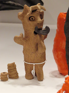 The GOMA is another free museum across the river from downtown Brisbane. The amount of free facilities and activities here is really a plus for Brisbane. We did not try to visit all of the exhibits since we can return anytime for free. We spent most of our time on the Asia Pacific Triennial exhibit. So many cultures were represented here, from Nepal, to the Torres Straights to Taipei. Many of the cultures did not fit within a specific country, the Tamang people were one of them. The Tamang people were indigenous people from an area that resides within Nepal, Bhutan and India. Their culture was subsequently fractured and suppressed by the "countries" that grew up around their traditional homelands. Another instance was the artist who made all the clay items below in her "The Vomit Girl Project". She was born in Tasmania from a Vietnamese father and Australian mother who grew up in Papua New Guinea and the Philippines. Mai Nguyen-Long's cultural identity is so mixed up it is like something that came out of a blender. We saw great art and reading the stories behind the art was most captivating. There was also a mesmerizing stop action film "Compound Eyes of Tropical" made by Zhang Zu Zhan about a mouse deer trying to cross a crocodile infested lake. The film was aired in a room separate from the sets and puppets used in the film.
