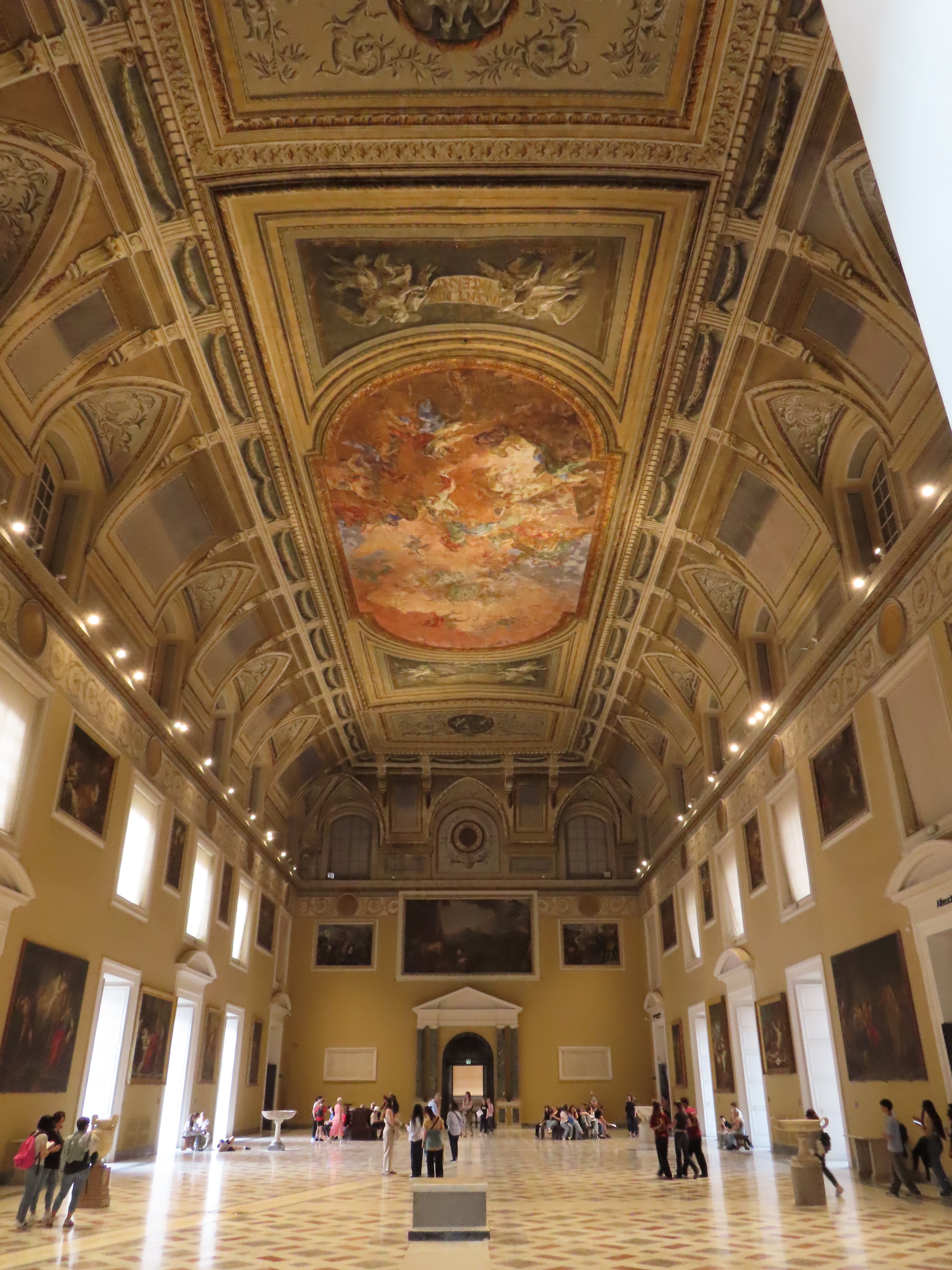 We ascended a very elaborate staircase up to the first floor. Here we found masterful mosaics and the "Secret Room." The secret room's origin began as the so called sexual and obscene relics sequestered by church authorities. The masses could not be corrupted by exposed penises, copulating humans or animals, or any overtly sexual representation, so these items must be sequestered away. This collection was purchased by a private collector after an extended negotiation and only men with impeccable moral fiber could view the collection. Then we went to the second floor and were blown away by the immensity of this hall. After sitting for a while we saw the weather outside was turning. We had a tea and a coffee in the cafe to let the rain work itself out.